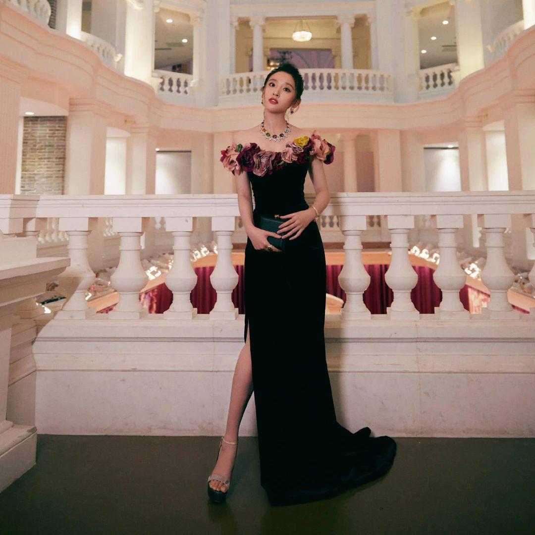 最吸引人的还得是唐艺昕的身材,生个孩子身材完全没两样,下半身还采用了高开叉的设计,性感又撩人,我们在日常生活中选择连衣裙的时候也可以大胆的尝试下高开叉设计,性感的同时还很好地修饰了腿型,腿粗、腿不直也完全没在怕的,堪称长裙必备设计,是一种非常高级的性感。