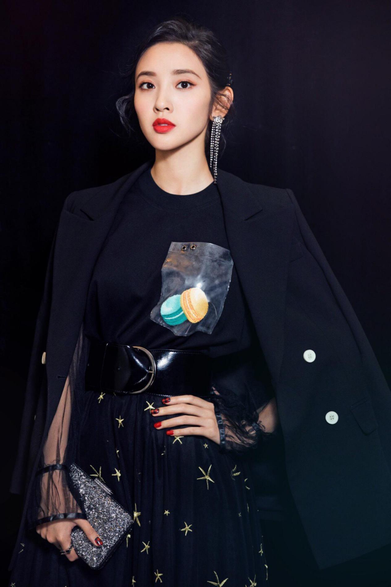 唐艺昕私下里的穿衣风格也非常多变,御姐风、少女风、名媛风等风格都可以完美驾驭,搭配的功底也相当不错,就比如这一身造型黑色的西装搭配黑色的纱裙,又酷又美,其实纯黑造型非常的高级,搭配起来也非常的简单,纱裙轻盈的质地很好地中和了黑色的沉闷,清爽又大方。