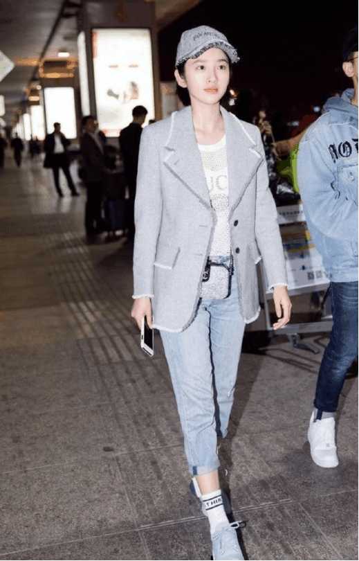 相信不少姐妹都很喜欢西装单品吧,尤其是到了这两年西装更是火翻了天,唐艺昕的这一套灰色的西装造型真的是又酷又甜,本身这件西装的版型属于比较宽松休闲的类型,帅气中性,但是唐艺昕的内搭非常淑女温柔,脚上的高跟鞋也很好地中和了这种中性感,整体的质感都非常高级清爽。